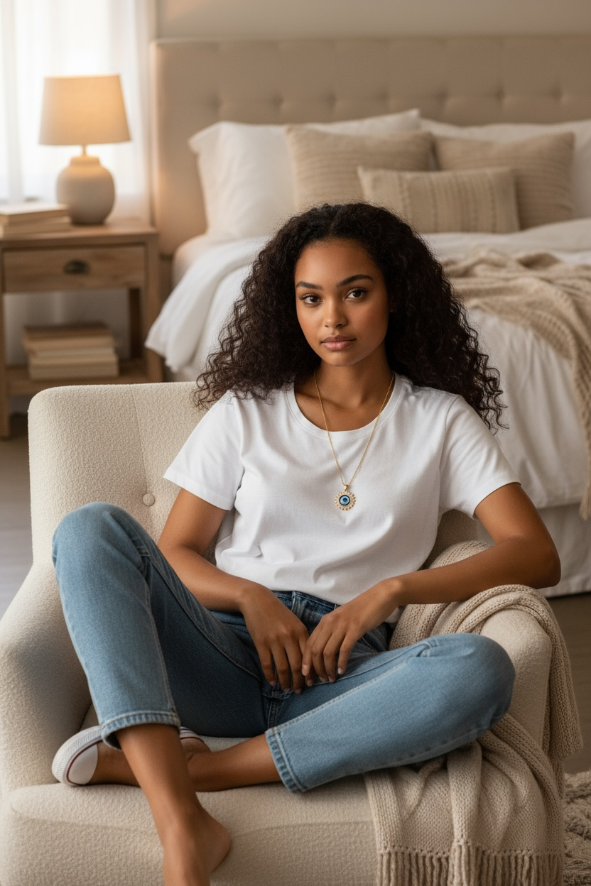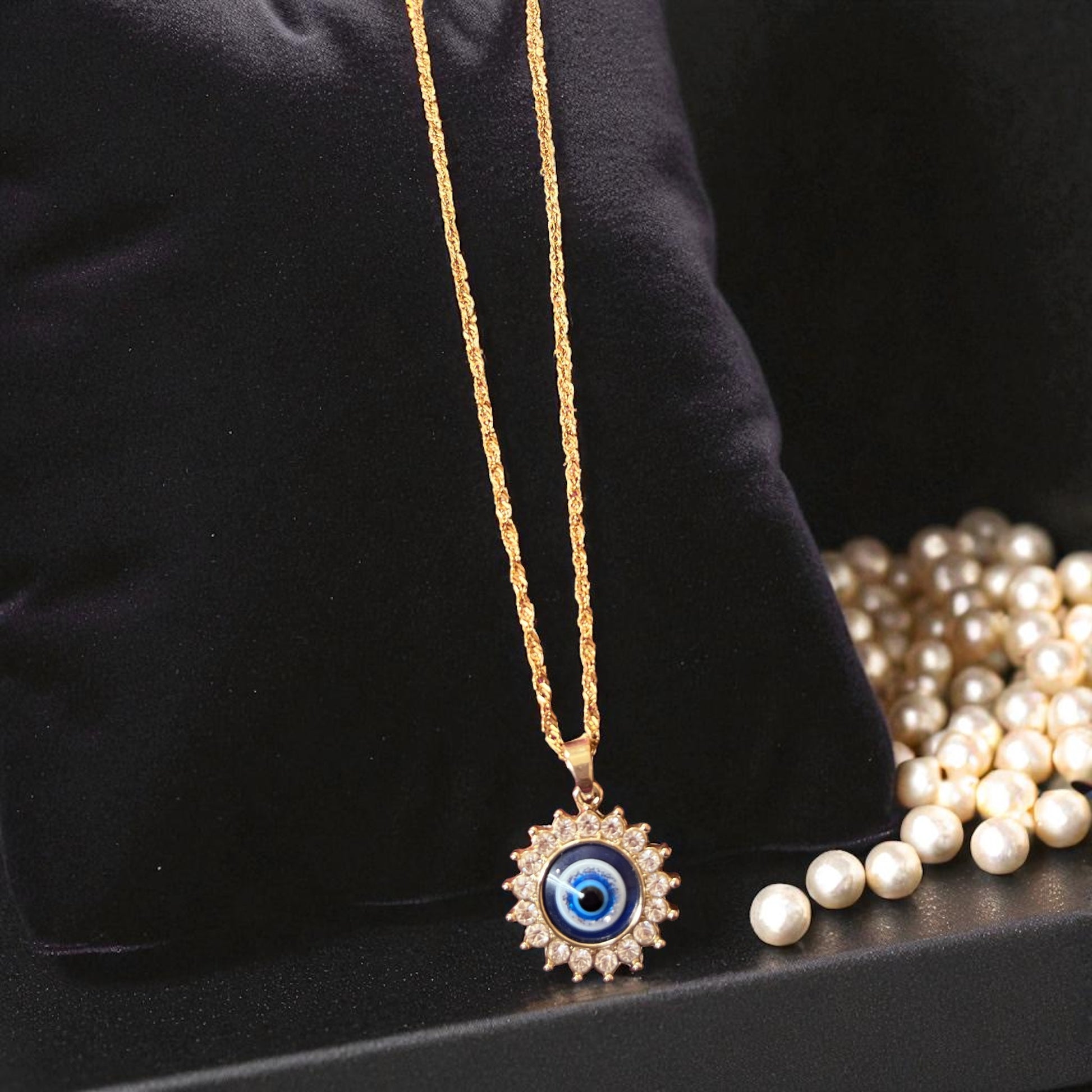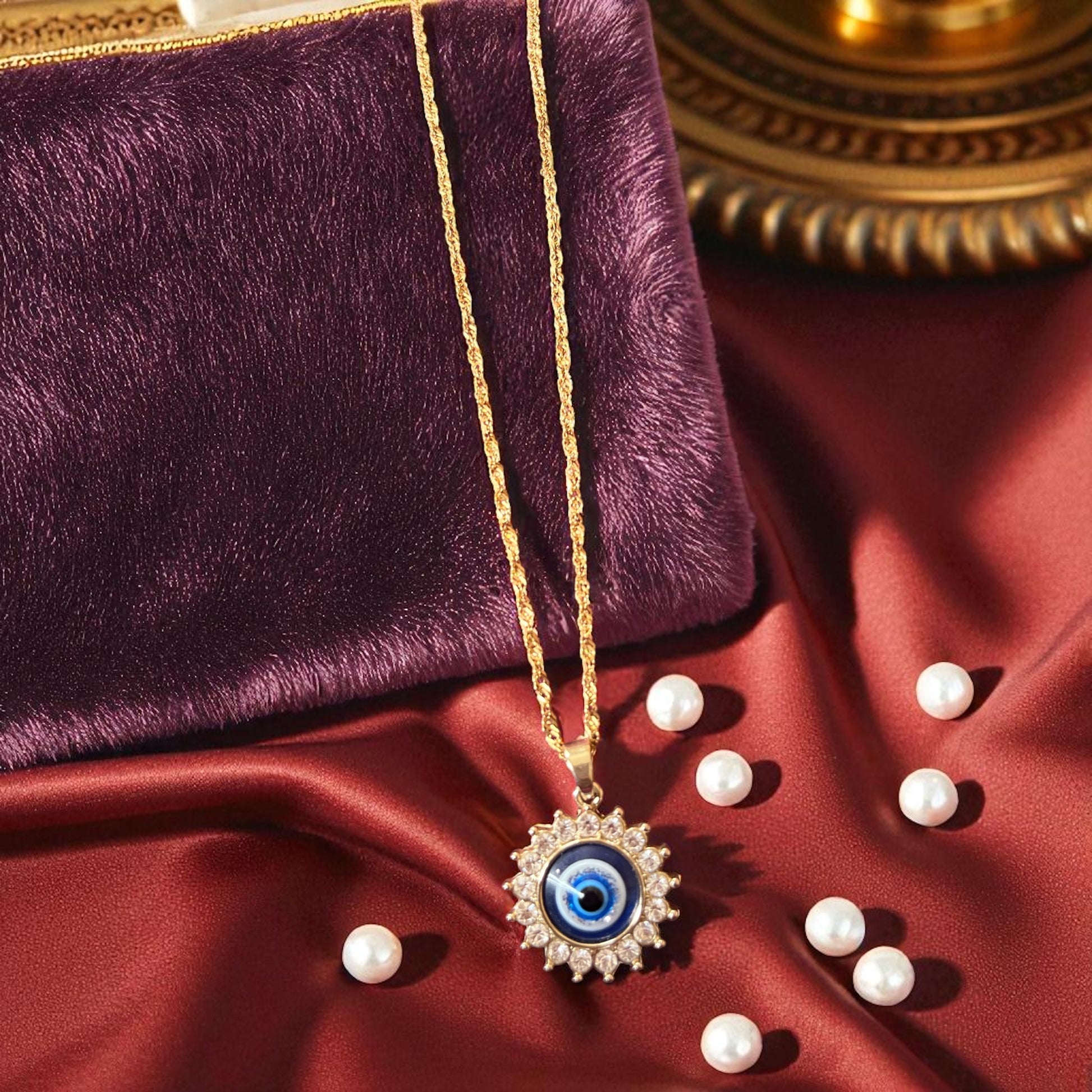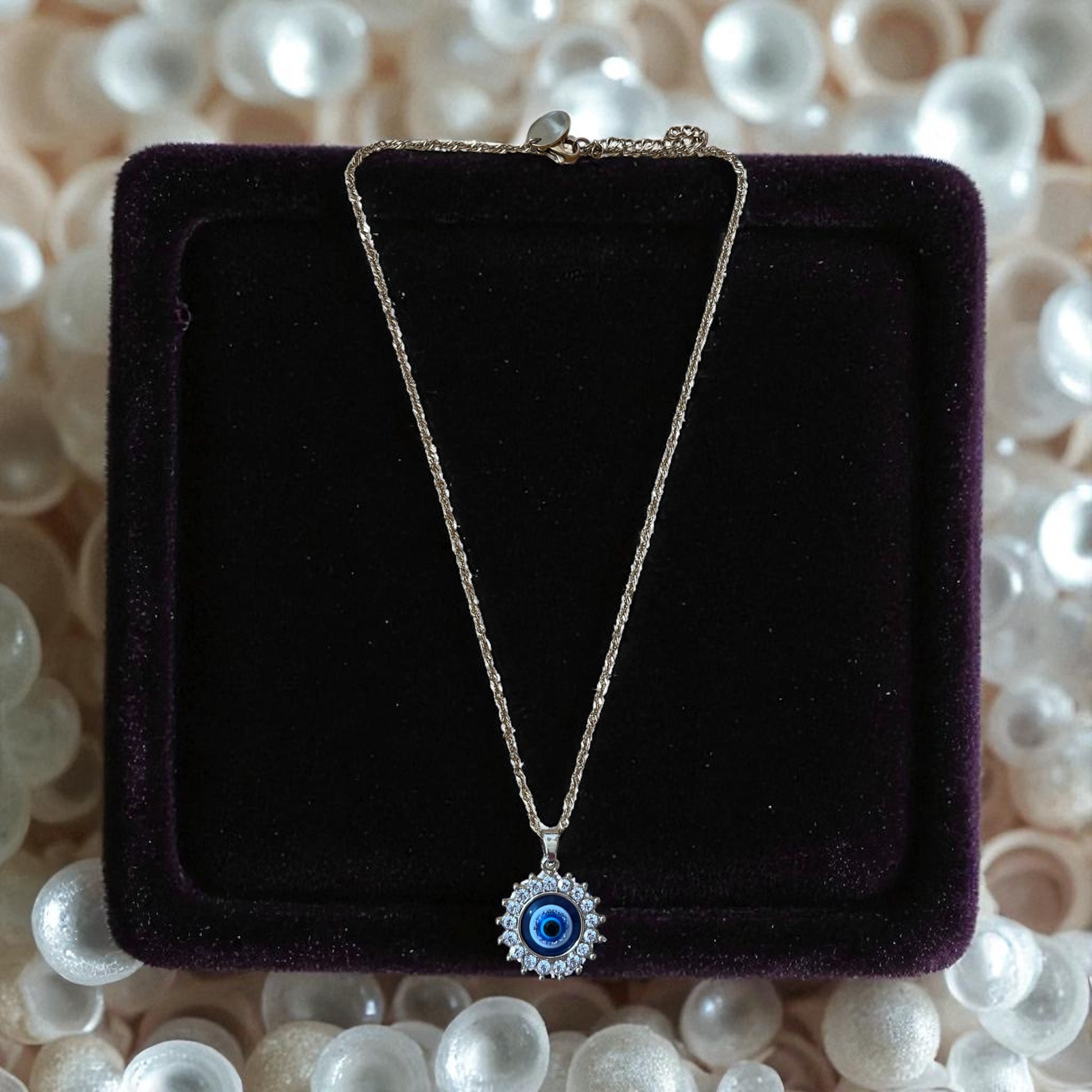 This limited-edition piece awakens your inner vision. Designed on a tarnish-free 45cm water wave chain, it features a mesmerizing evil eye pendant, a symbol of protection and clarity that has guarded truth-seekers for centuries. Encircled by light-catching stones in a radiant sunburst setting, it reminds you that you see clearly, you see deeply, and what you perceive is real.